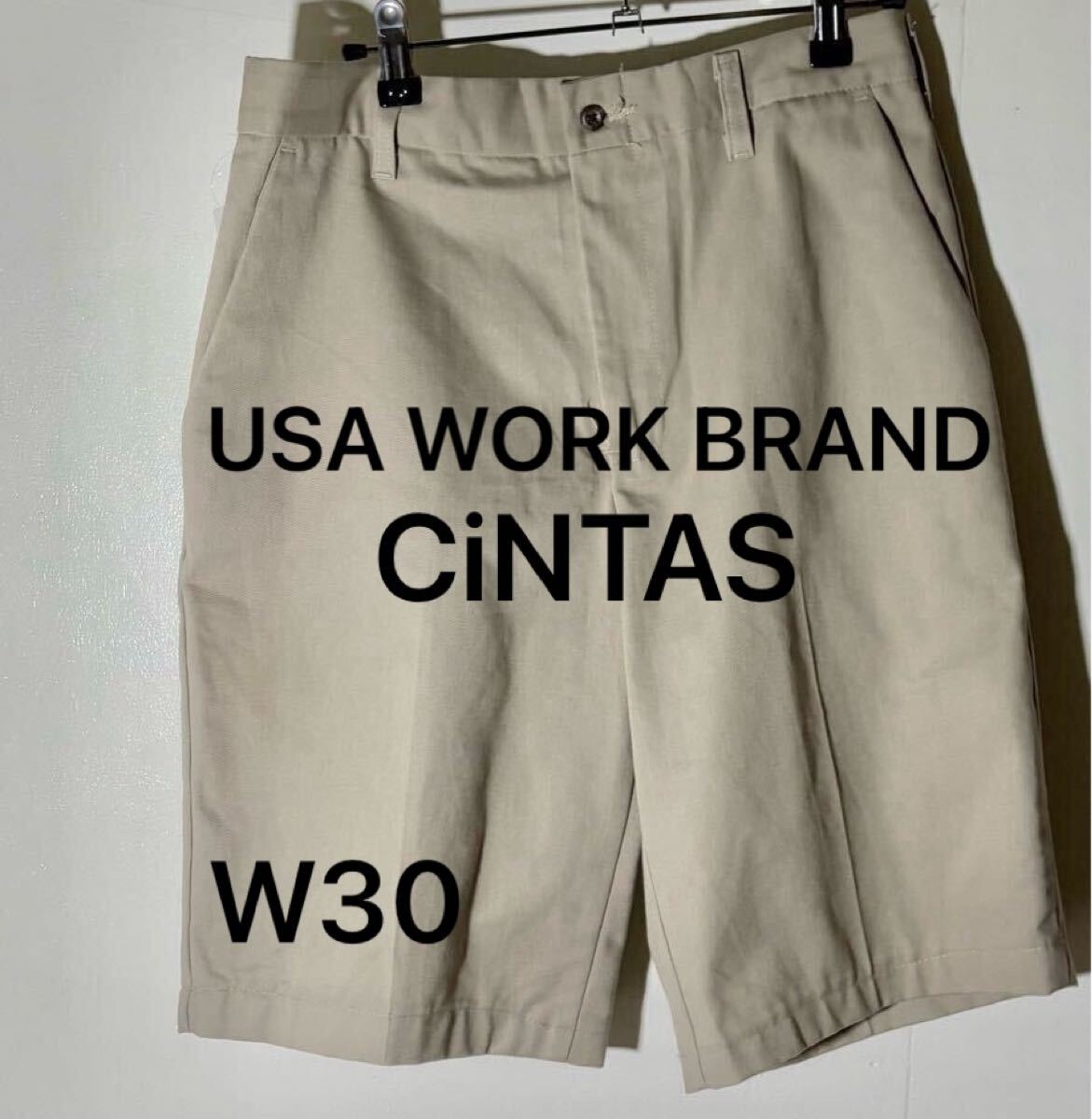 > USA ワークブランド 90's 〜 Cintas シンタス ヴィンテージ ワーク ハーフ パンツ W30 ベージュ アメリカ 古着 チノ ショーツ