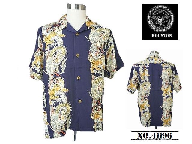 - 【送料無料 35%OFF】HOUSTON ヒューストン アロハシャツ ハワイアンシャツ 「龍虎」柄 NO.41196 NAVY_Lサイズ