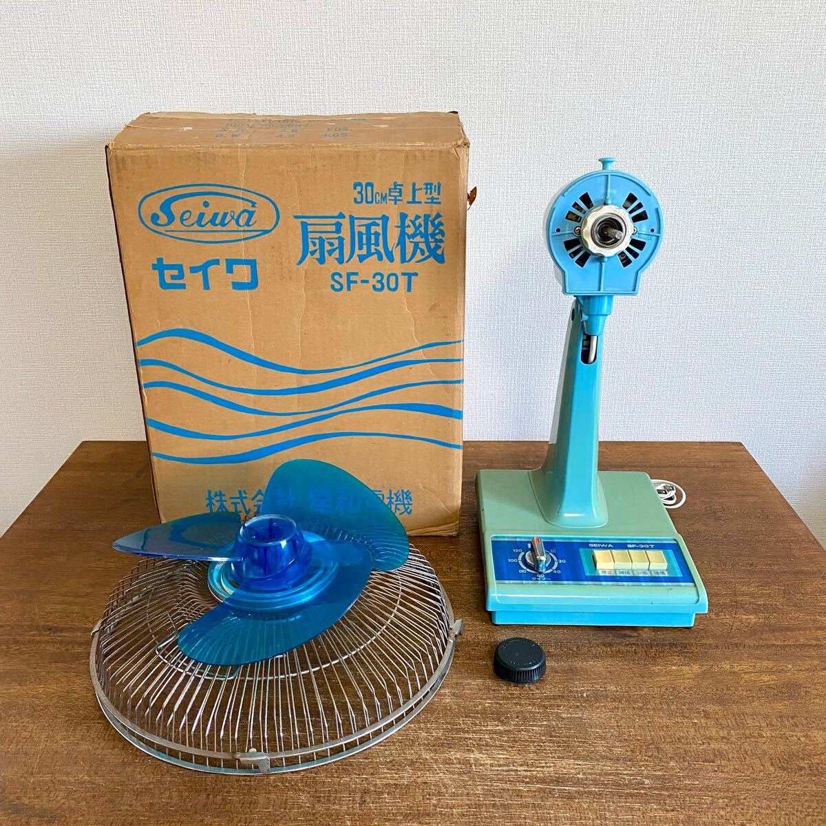 - 昭和レトロ 星和 SEIWA 扇風機 SF-30T / 3枚羽根 羽根径30㎝ 箱付き ヴィンテージ 当時物 【動作品】