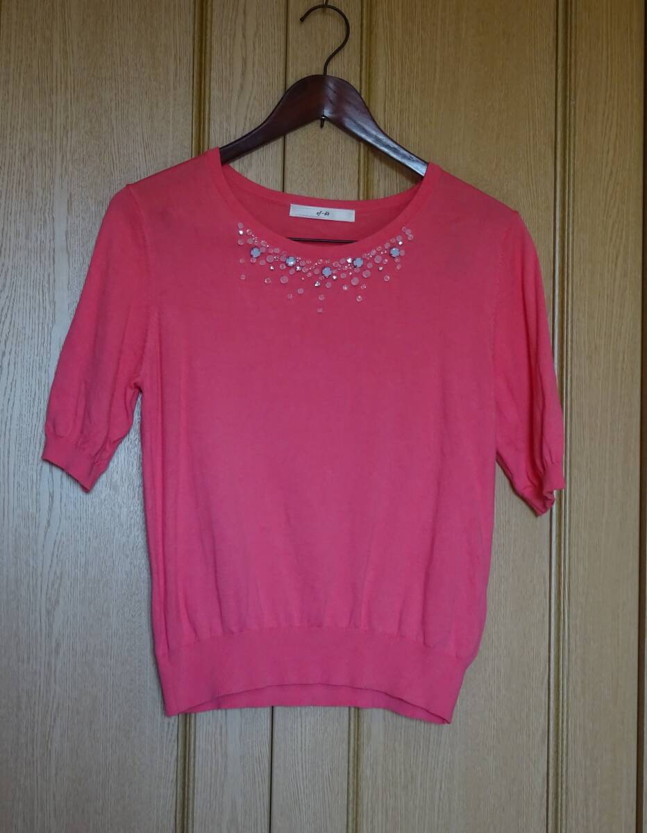 - ef-de エフデ 半袖ニット 15号 春夏向け カットソー 大きいサイズ ピンク ビジュー付き