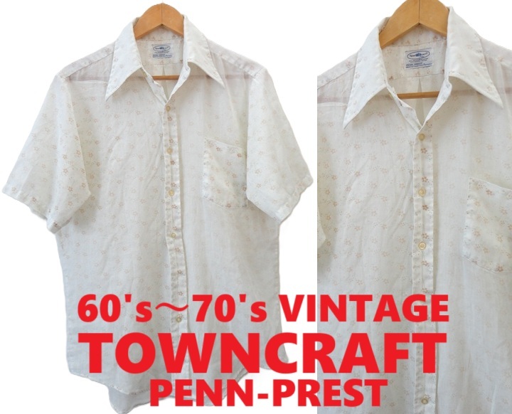 > 60's~70's ヴィンテージ/Penneys/TOWNCRAFT:タウンクラフト/PENN-PREST/コットンポリ 小花柄 半袖 シャツ/ホワイト/Msize相当/ペニーズ