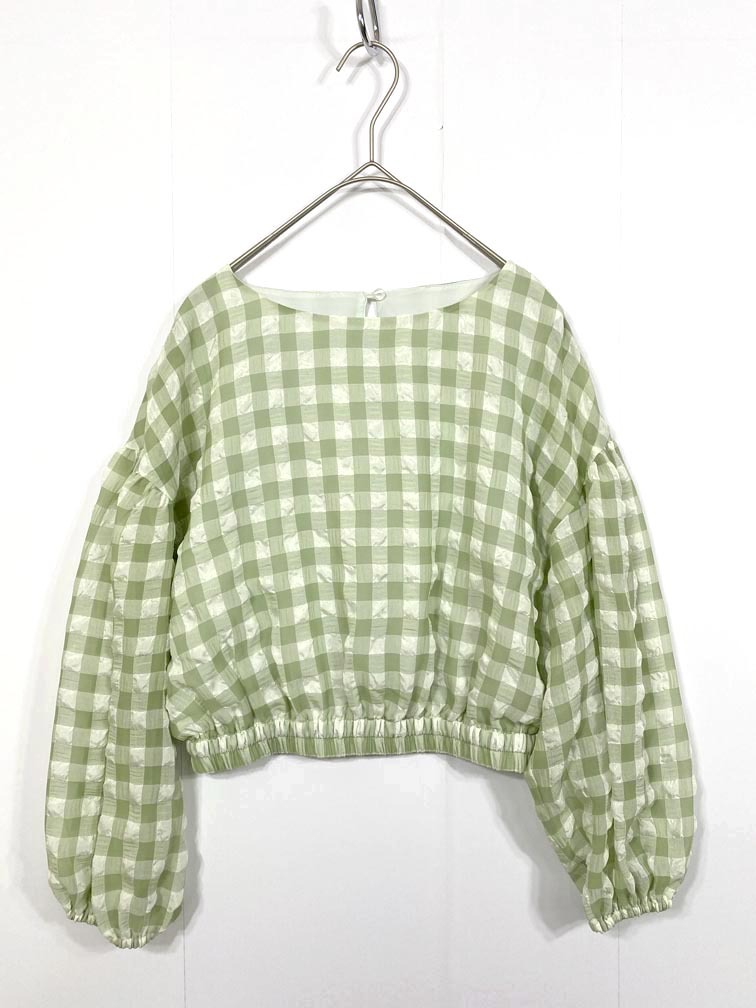 - ゆうパケットOK NATURAL BEAUTY BASIC ナチュラルビューティーベーシック 定価6930円 ギンガムボリューム ブラウス シャツ sizeS/黄緑 ■◆