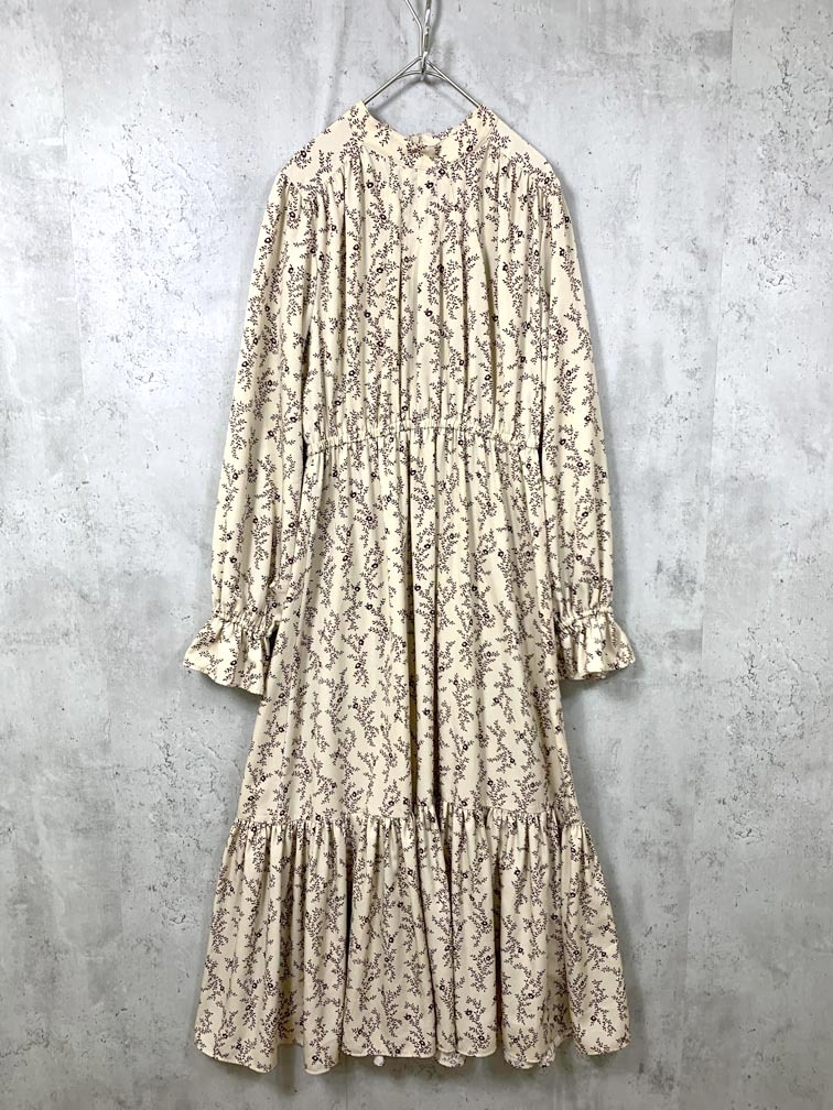 > ゆうパケットOK 美品 MOUSSY マウジー 花柄 スタンドカラー フレア ワンピース size1/ベージュ ■■