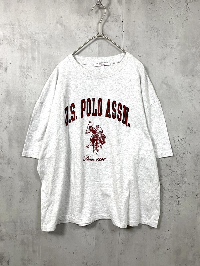 > ゆうパケットOK 美品 U.S.POLO ASSN ユーエスポロアッスン カレッジロゴ刺繍 Tシャツ sizeL/ライトグレー ■■