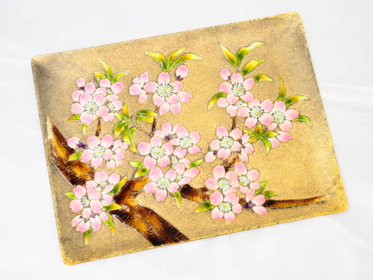 > ◆安藤七宝店 ANDO CLOISONNE 七宝焼き 長方形 飾り皿 桜◆サイズ:約18×23.5cm◆陶磁器/伝統工芸品/食器/花/プレート/コレクション79682B