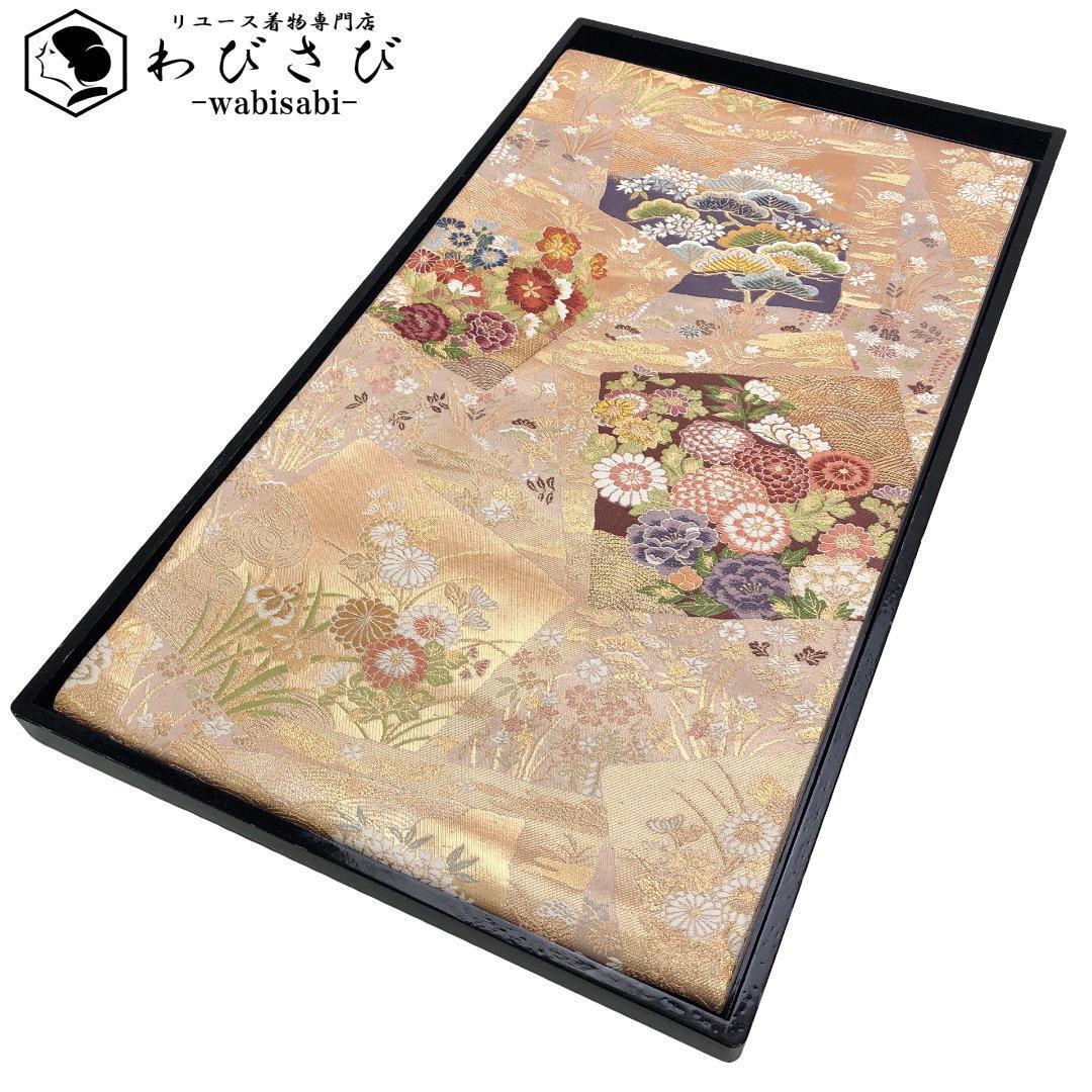 > 袋帯 西陣織 織華佐竹 証紙付 色紙に美しい花模様 金糸 今様色 O-5311