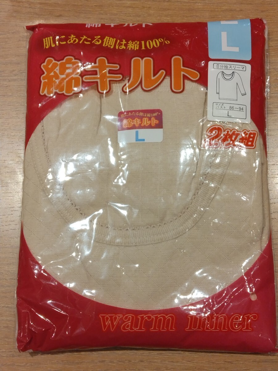 > 《使いかけ》レディース 八分袖スリーマー シャツ 1枚 Lサイズ ベージュ 冬用 キルト 肌着 インナー 婦人物 c115/361