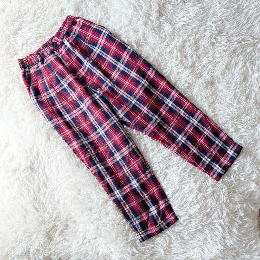 - 《リディア》 (M) タータンチェックテーパードパンツ 黒猫刺繍 ロゴボタン