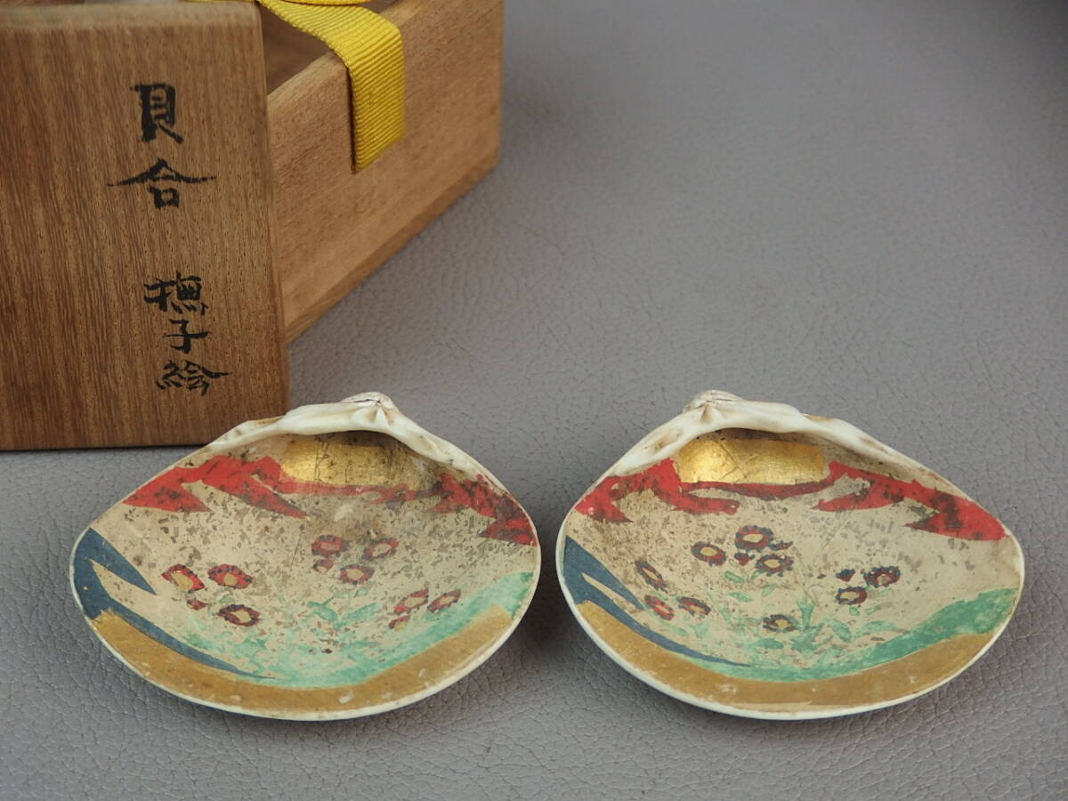- 【骨董・茶道具】★古い 蛤★★撫子絵貝合わせ 香合 gm091vb