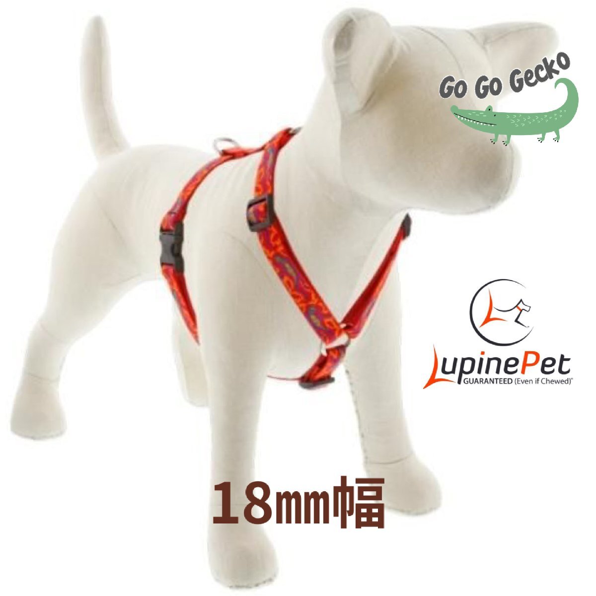 > ローマンハーネス・Lサイズ 18mm幅Go Go Gecko柄 50-81cm LUPINEルパイン アメリカ製 軽量 丈夫 中型犬