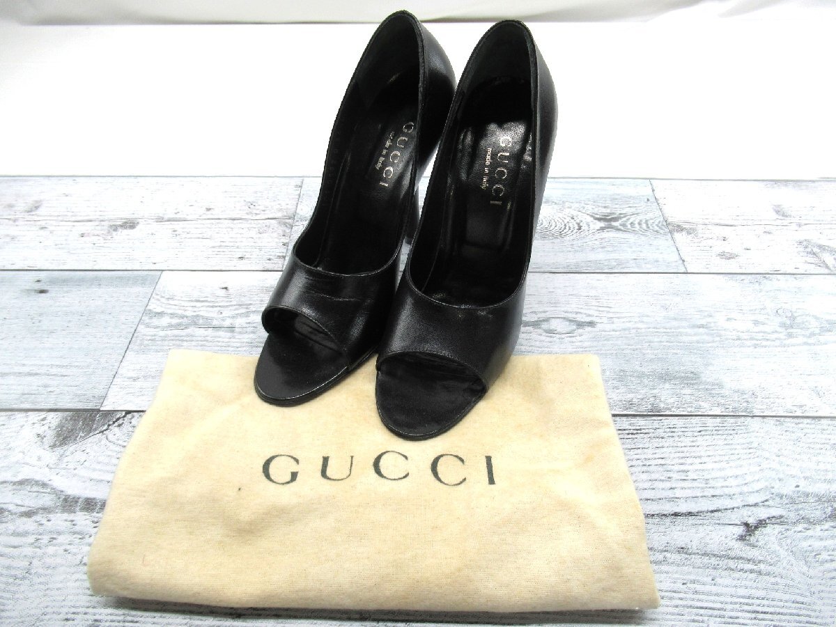 > ☆【B送900円】2005 GUCCI グッチ オープントゥパンプス レザー 革 ブラック ハイヒール イタリア製 レディース 34 1/2 C