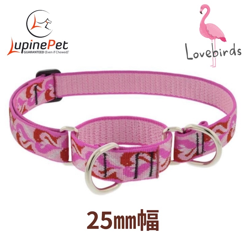 - ハーフチョークカラー・Mサイズ・25mm幅 ラブバード Lovebirds柄 38-55cm LUPINEルパイン アメリカ製 軽量 丈夫