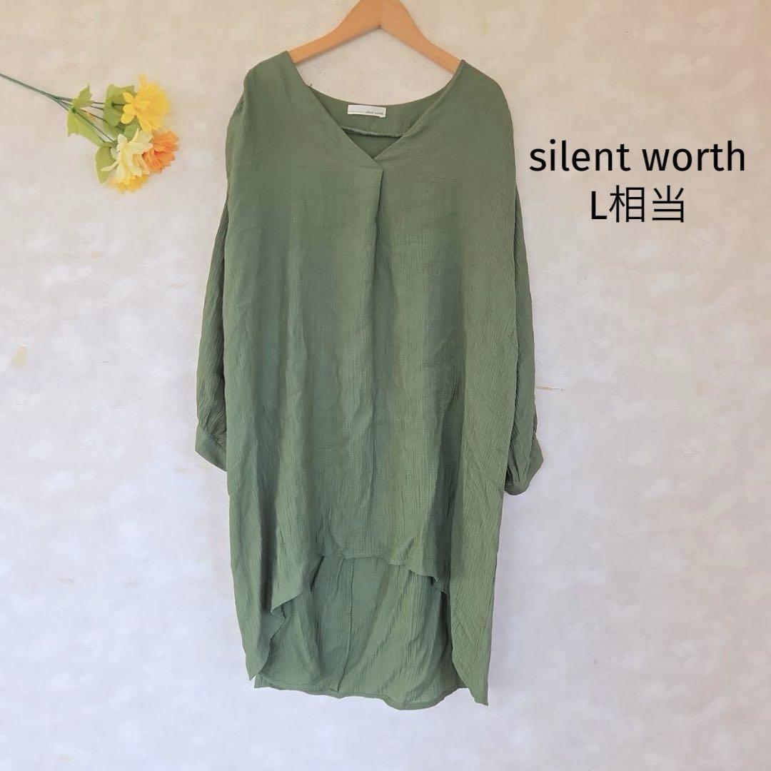 - サイレントワース silent worth チュニック【L相当】グリーン ちぢみ