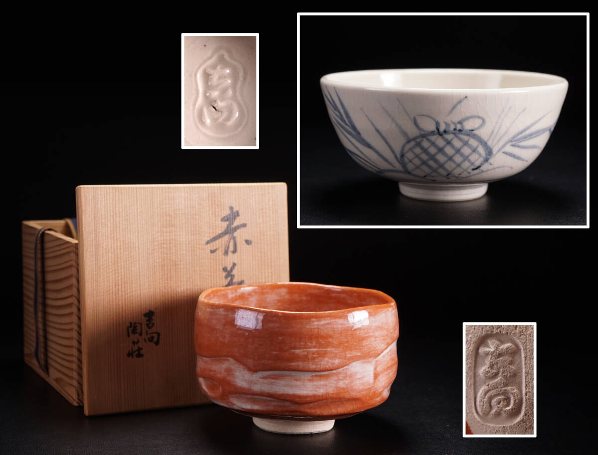 - 【asiya273】茶道具 吉向陶荘 吉向松月 茶碗 2点◆茶器 蔵出し 古美術 即決 送料無料