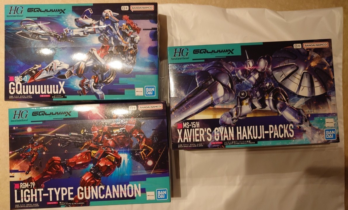 - 【ガンプラ】未組立て GQuuuuuuX 軽キャノン & エグザベ専用 ギャン ハクジ装備 & ジークアクス ガンダム HG 3体