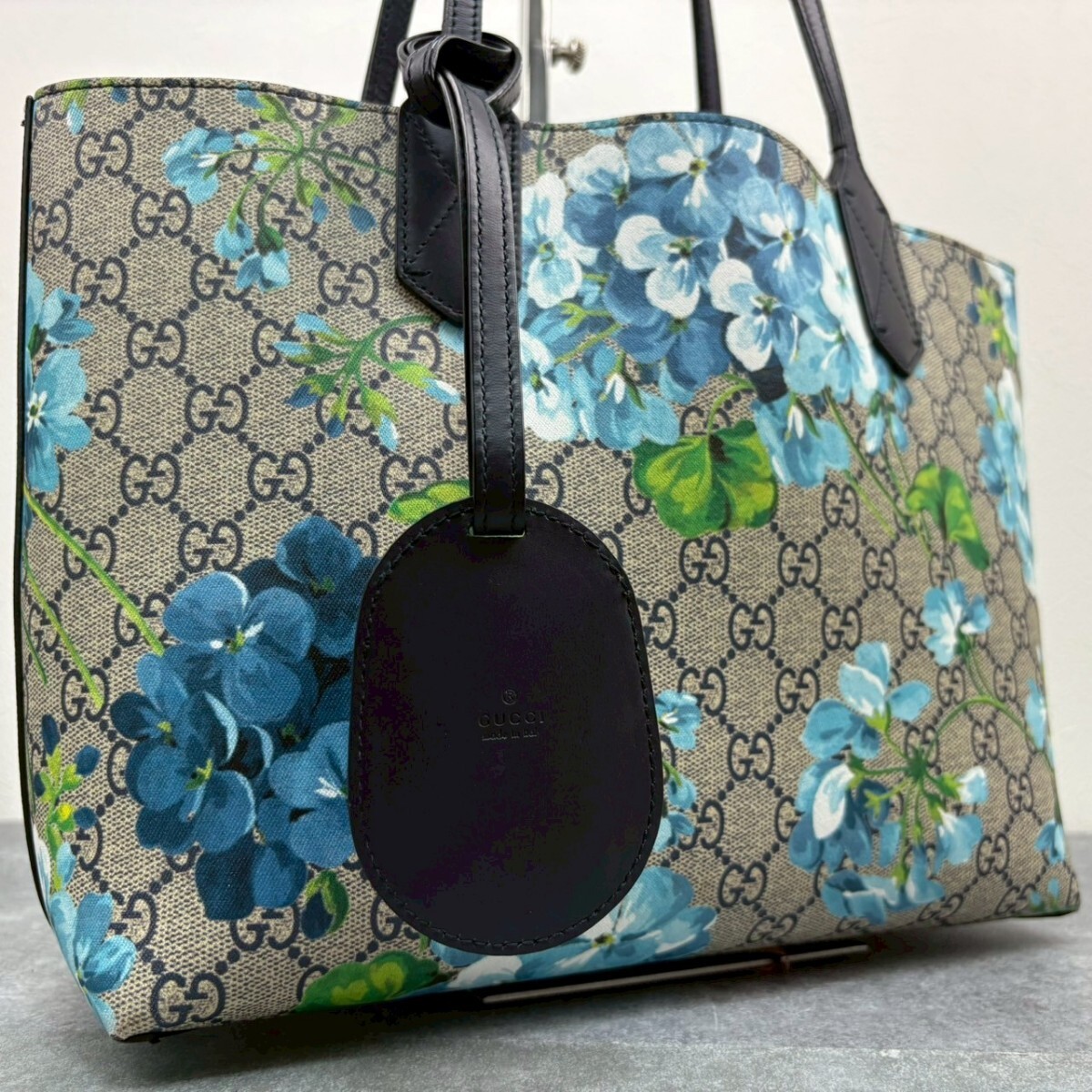 - 【極美品/希少品】グッチ GUCCI トートバッグ リバーシブル ハンドバッグ GGブルームス 花柄 PVC レディース メンズ GG柄 レザー