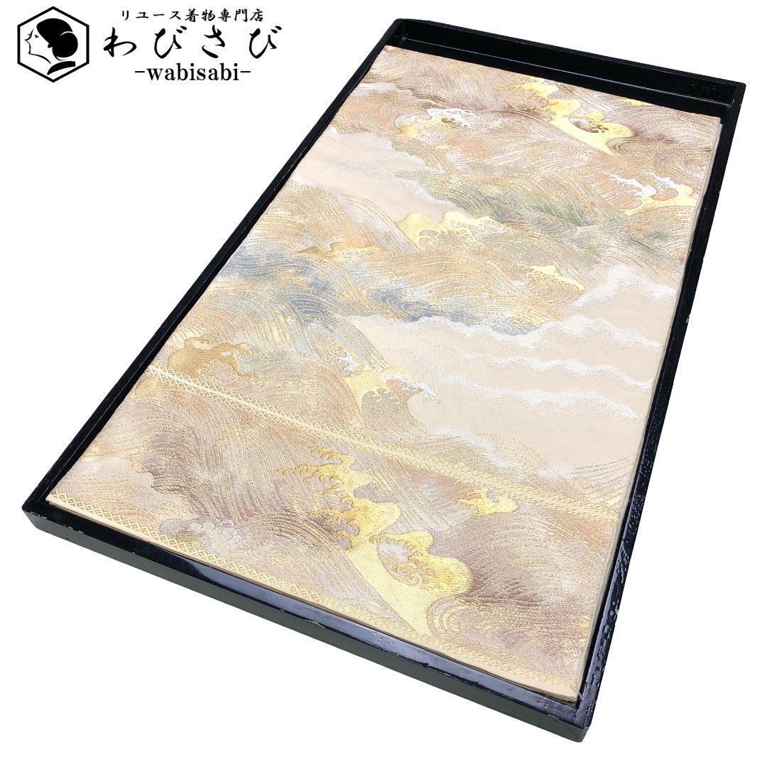 > 袋帯 西陣 躍動感のある波模様 金銀糸 練色 O-5255 着物 きもの kimono 和服 和装 中古 リサイクル着物 【送料無料】