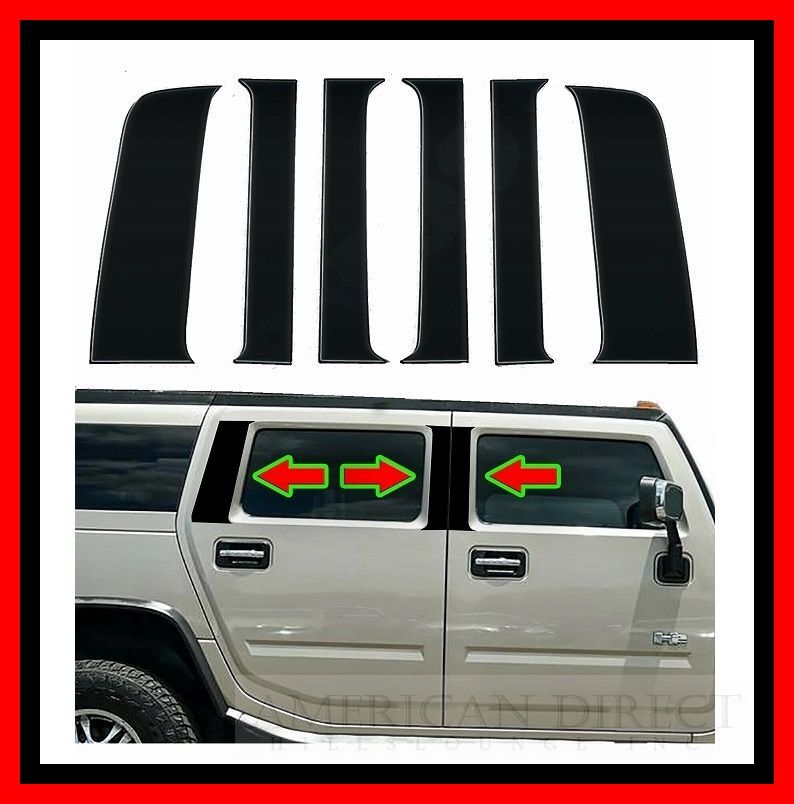 - 【激レア/ブラック/ポリカーボネート製/6PC】ハマーH2 サイド ピラー ポスト トリム ミラー ライト ドア バイザー シェード Pillar Trim