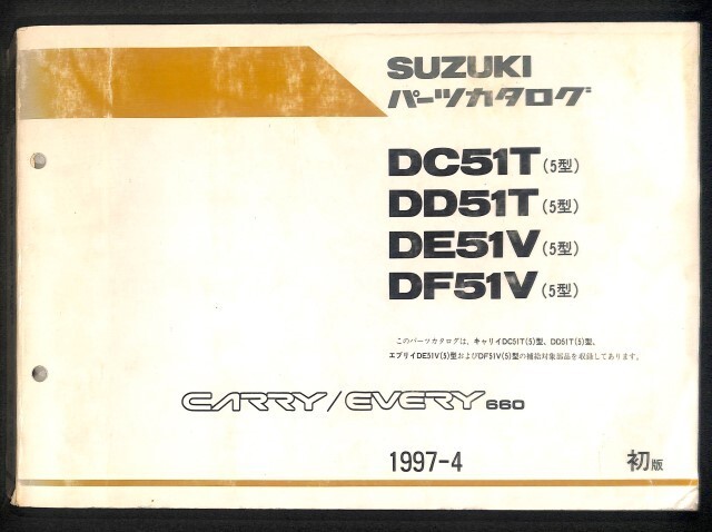 > ★スズキ キャリイ エブリイ DC51T 5型 パーツカタログ 1版★0531 1997.4 DD51T DE51V DF51V キャリィ エブリィ マニュアル 整備 修理 分解