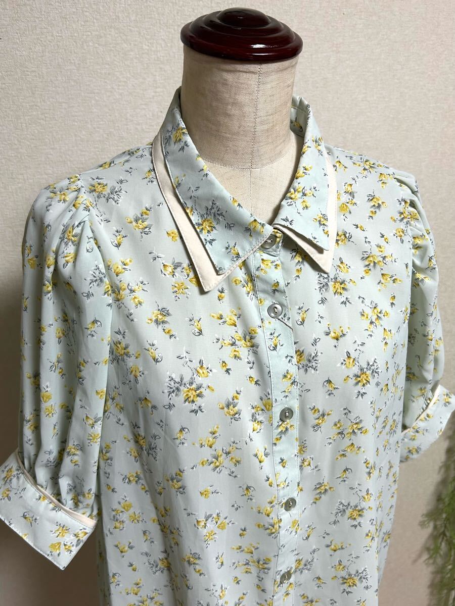 - 新品【C2 February★フェブラリー】小花柄半袖ブラウス・二重襟・Mサイズ