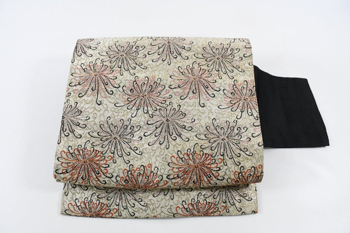 - 名古屋帯 アンティーク 花 帯丈332cm ★着物屋 ne-15713 桜庭呉服店