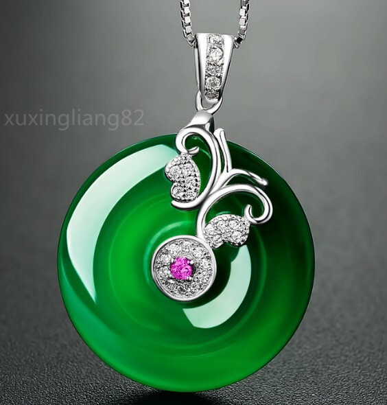 > 美しく輝く◆ 天然緑玉髄 ペンダントトップ ネックレス メッキ 加工 アクセサリー 平安 健康 お守り チェーン付き