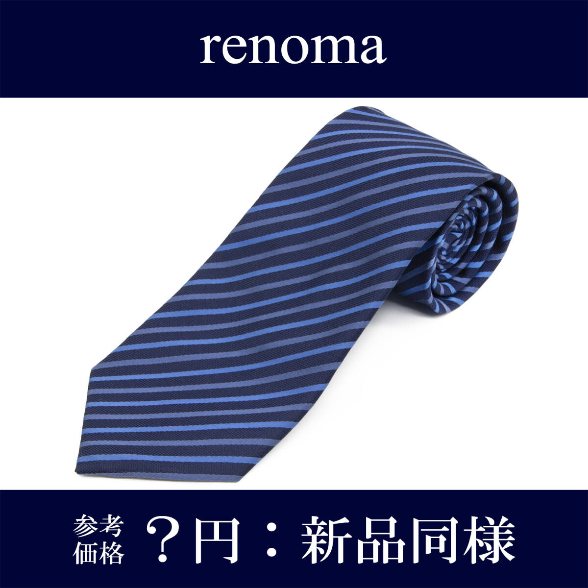 > 送料無料 レノマ ネクタイ レギュラータイ ジャガード 新品同様 シルク 青 ネイビーブルー ストライプ シンプル ブランド イタリア製 P170