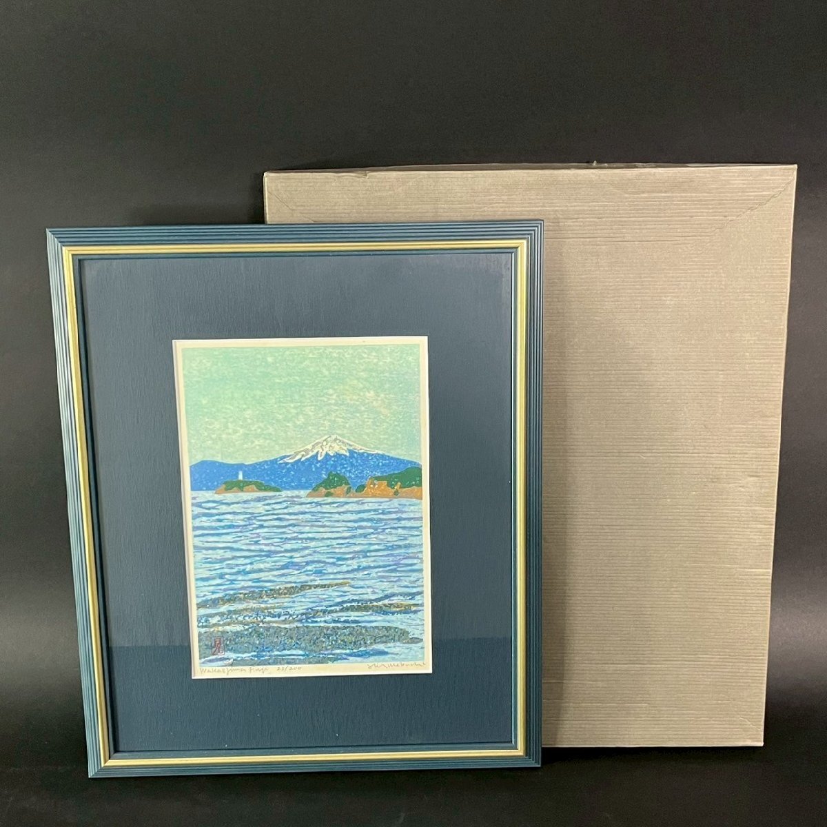 - SW0616-39-3 晃 Wakaejima Fuji 富士山 海 風景 版画 色彩 絵画 美術 絵 高さ28㎝ 横幅20㎝ 額 高さ46㎝ 横幅38.5㎝ 奥行3㎝ 120サイズ
