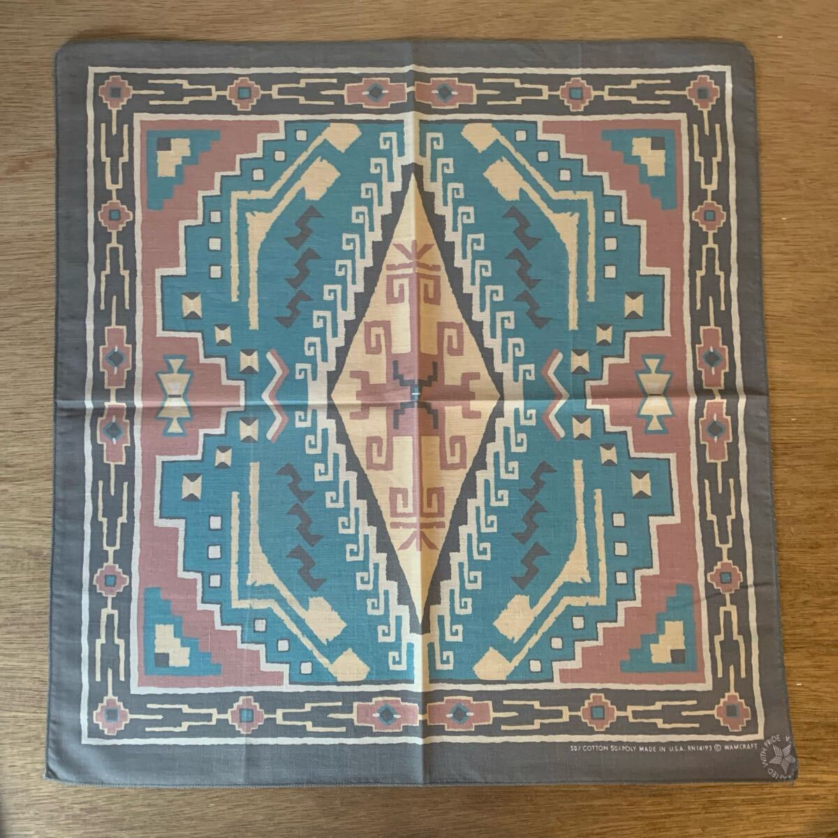- 送料無料 Vintage バンダナ ネイティブ柄 ハンカチ アメリカ仕入れ グレー USA製 コーデ アイテム 小物 おしゃれ 雑貨 ヴィンテージ A1780