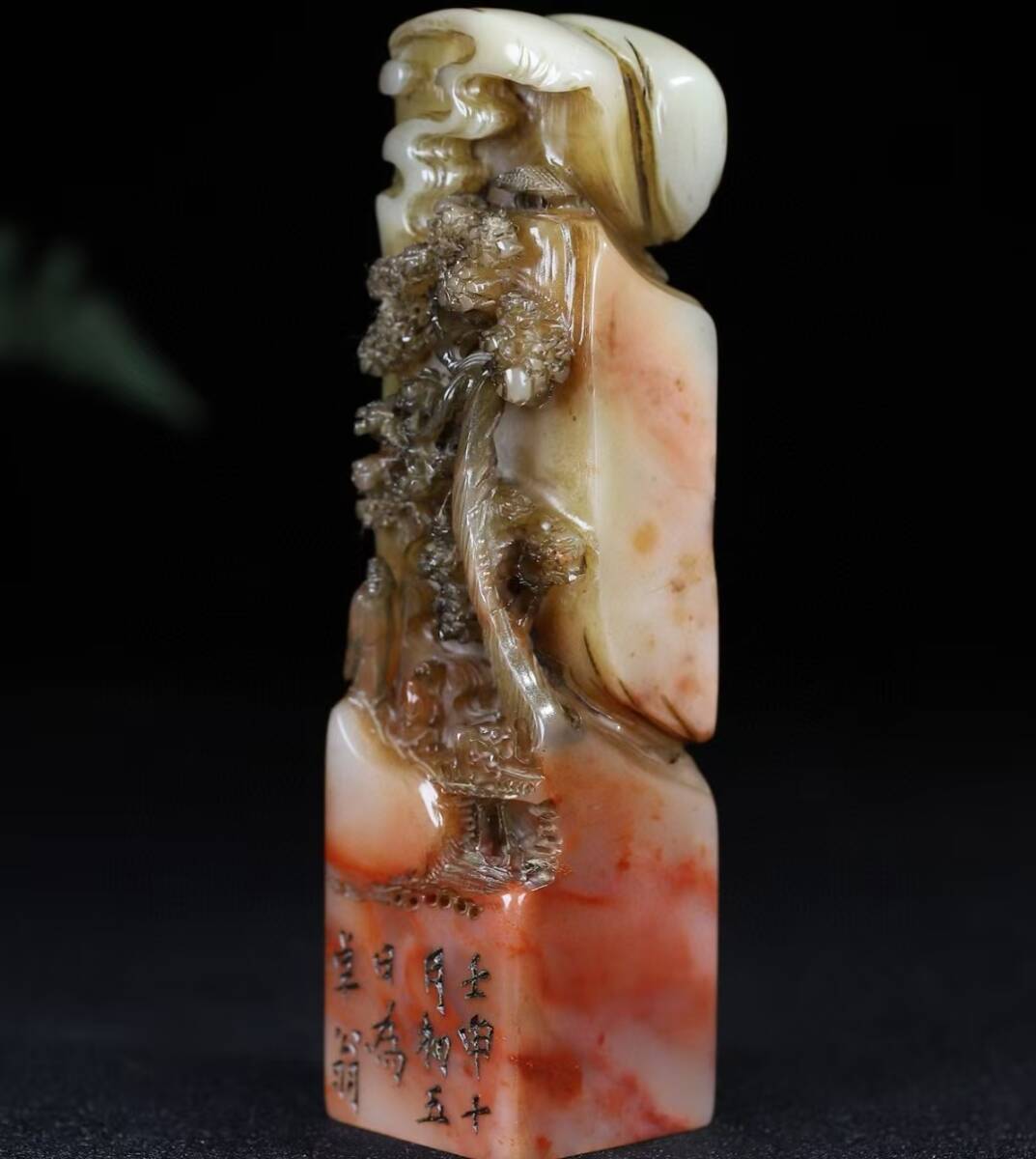 - 印鑒 寿山石 秘藏 清代【 山水印 松下老人図 】 印章 古印材 印鑑の方 老玉 唐物 古玉彫 天然石 稀少珍品 古美術 古賞物 古置物 旧蔵 7.15