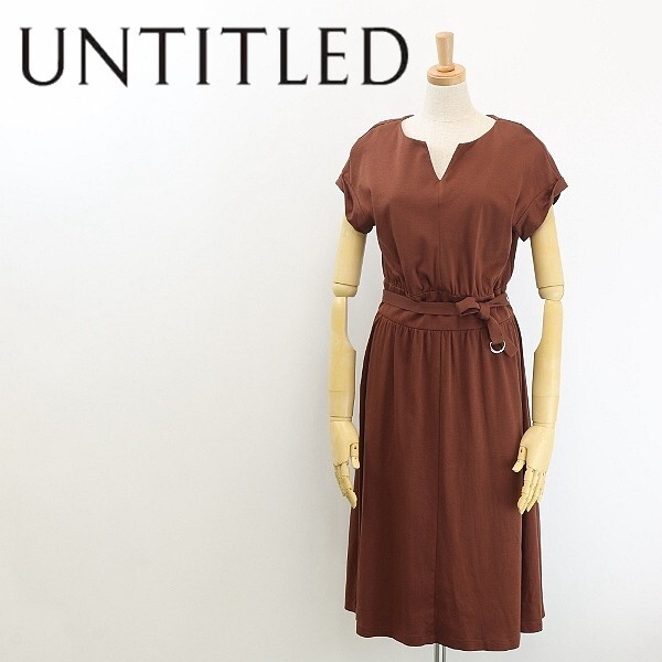 - 【FA237】◆UNTITLED アンタイトル コットン フレンチスリーブ ギャザー ベルテッド ワンピース 茶色 ブラウン 1