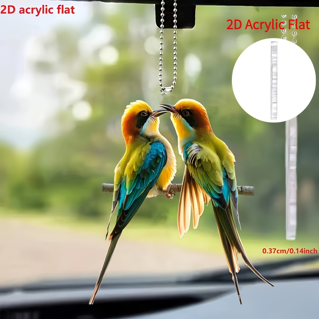 - キーホルダー 2匹の鳥 動物 カップル 平面 2D アクリル 8cm かわいい おもしろ バックミラー 吊り下げ アニマル 車内 おしゃれ 飾り t7355