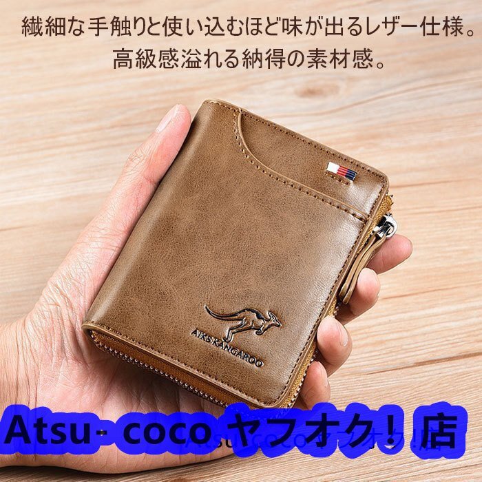 > 新品メンズ 財布 ラウンドファスナー レザー 革 カードケース 小銭入れ 多機能大容量 2つ折りRFID盗難防止 ギフト3色選択/1点