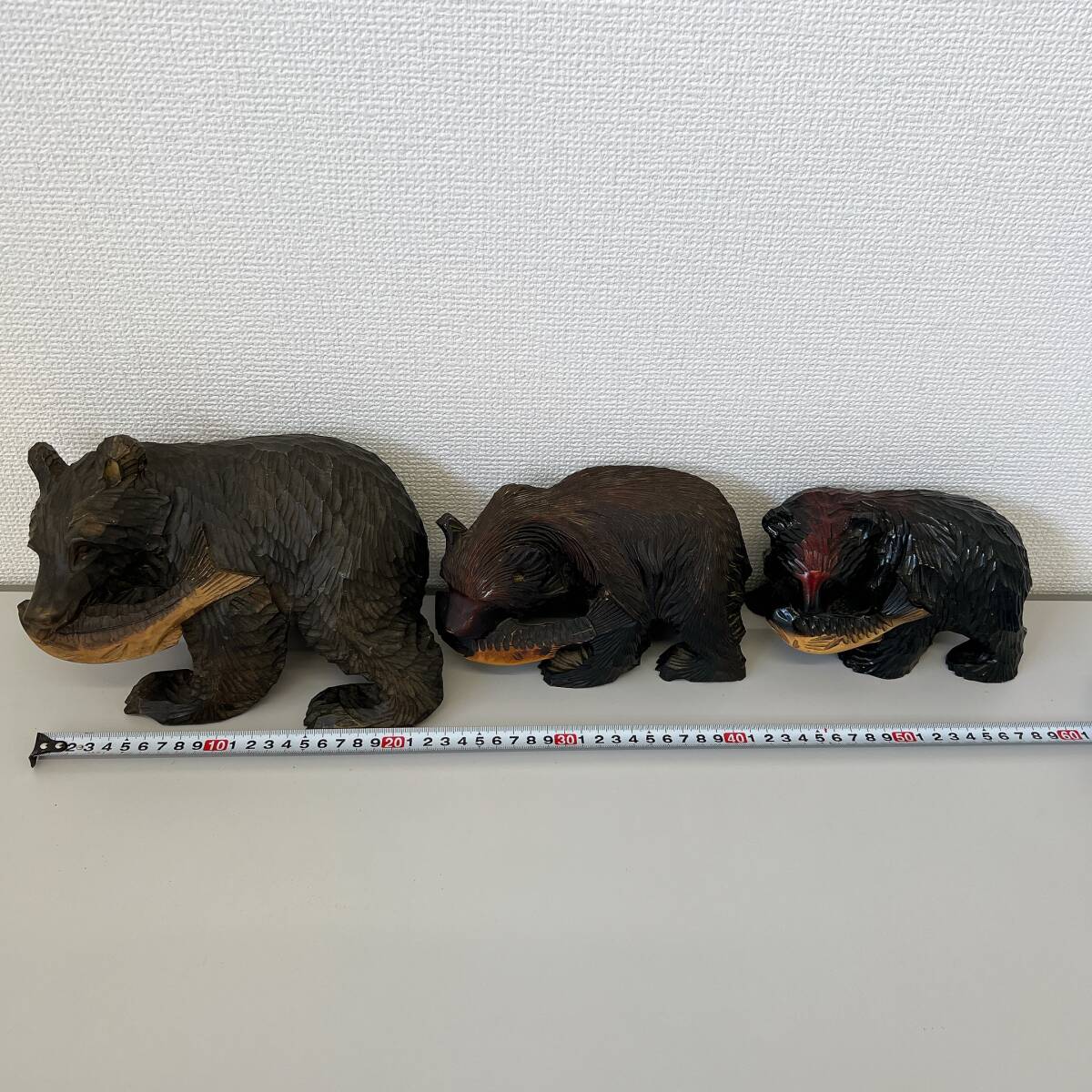 - 北海道の民芸品 木彫りの熊 3点セット まとめ売り 工芸 置物 アンティーク ビンテージ 中古