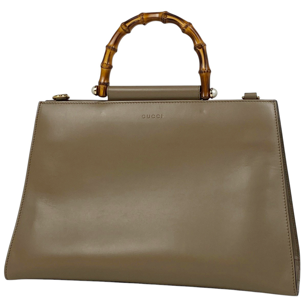 > グッチ GUCCI ニム バンブー ハンドバッグ 2WAY ショルダーバッグ シェリーライン ウエブ レザー ブラウン 453764 レディース 中古