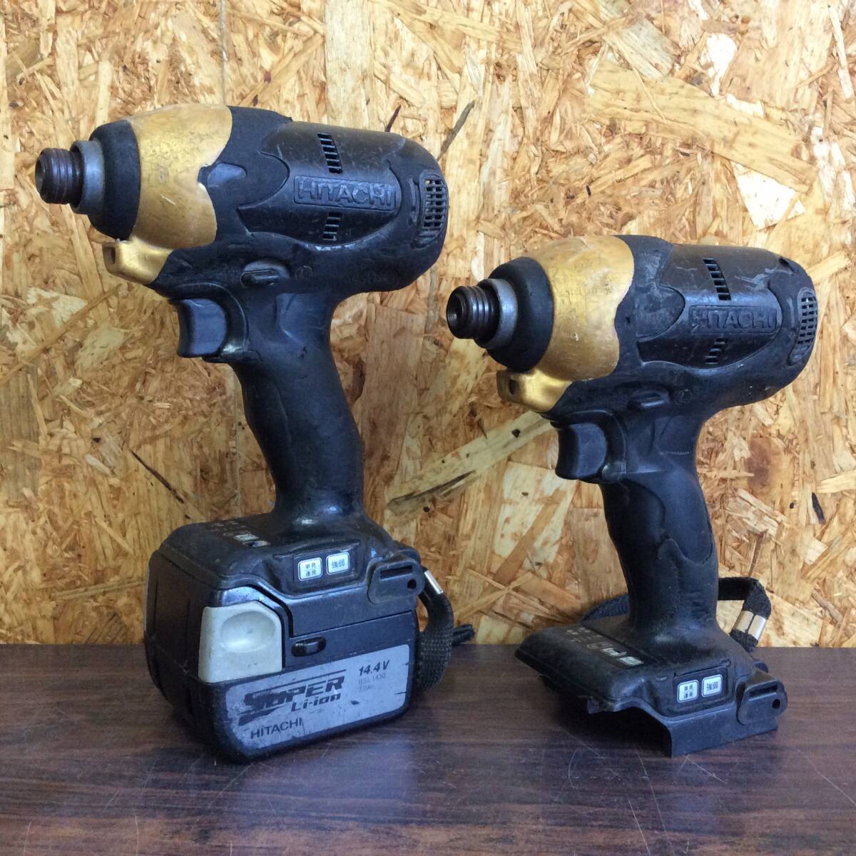 > 【WH-6959】中古品 HITACHI 日立 コードレスインパクトドライバ WH14DBL 本体2個+バッテリ1個