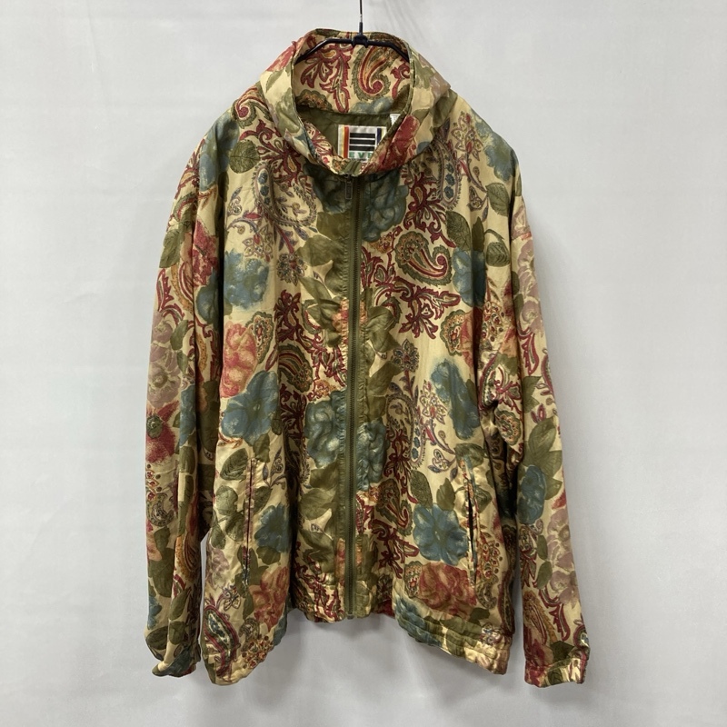 > ●EVR/イーブイアール/ボタニカルプリント/シルク ジップアップジャケット/シルク100%/フラワー/花柄/スタンドネック/ビンテージ/ゆったり