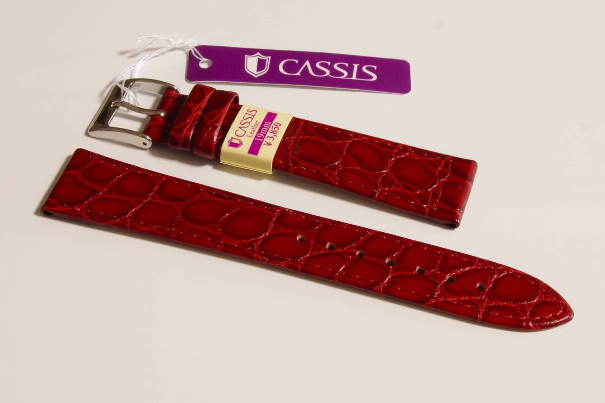 - 《送料サービス》 ラグ幅 19mm カーフ型押し カシス ブリストール バーガンディ