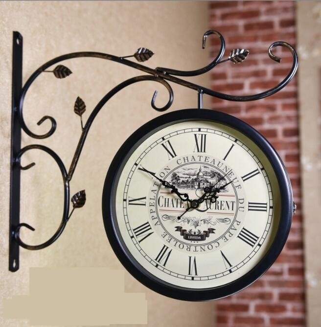 - 新品屋外ガーデンウォールクロック、錬鉄製レトロ両面ステーションクロックガーデンクロック360°回転防水屋外時計装飾屋外時計屋内屋外用