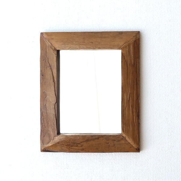 - 鏡 壁掛けミラー 木製 おしゃれ チーク材 天然木 ナチュラル アジアン アンティーク 古木のウォールミラー 送料無料(一部地域除く) tom1529