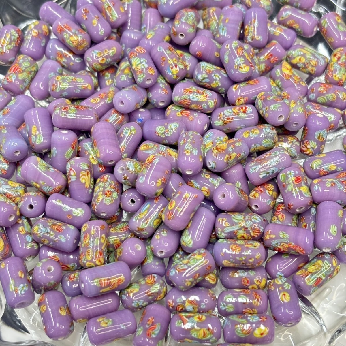 > ☆未使用 大量 チェコ トンボ玉 ガラスビーズ 282g 13×7mm 円柱 筒型 パープル 紫 大粒 ヴィンテージ 手芸 パーツ アクセサリー S-413