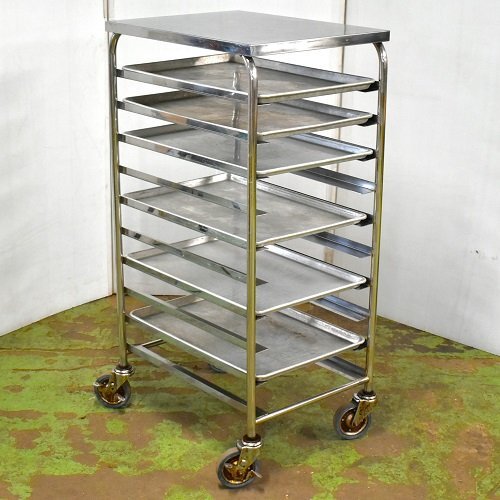 - ★ トレイラックカート 幅520mm×奥行670mm×高さ1280mm アルミトレイパン 6枚付属〈9010720〉★