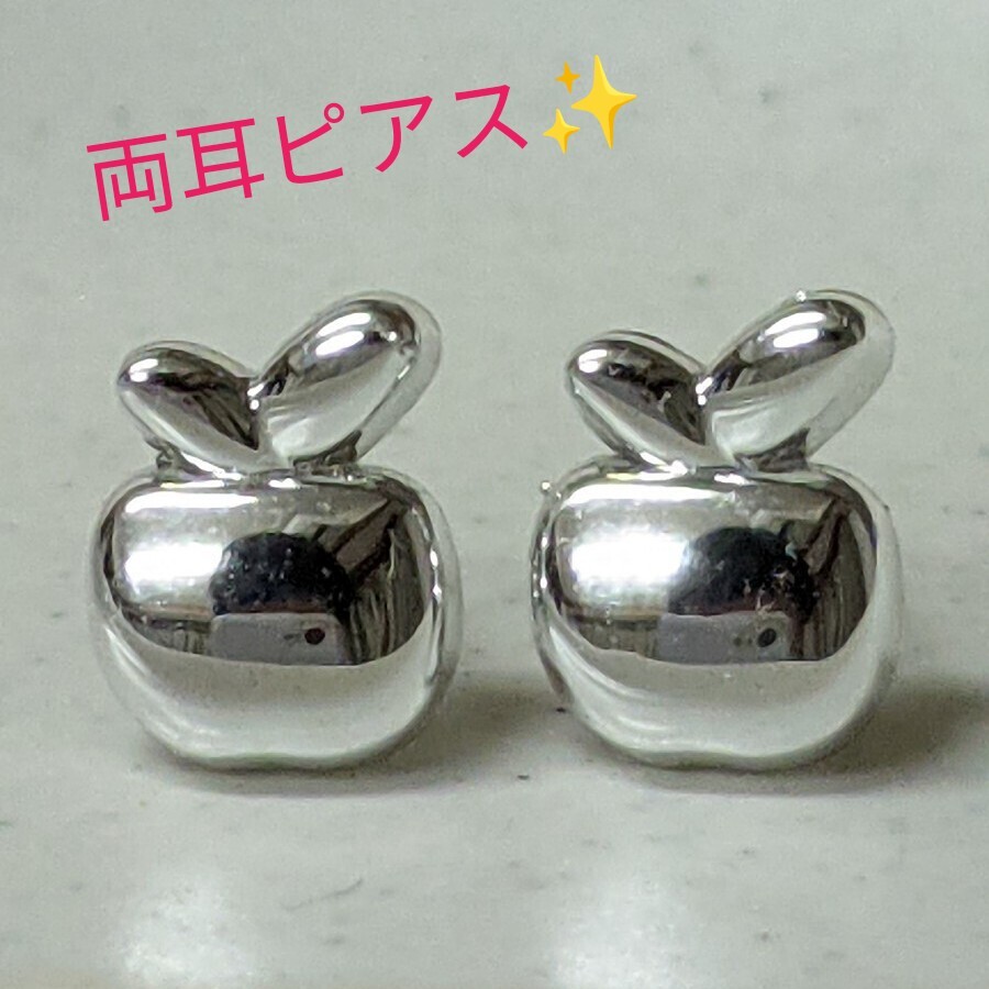 > ピアス 両耳 レディース シルバー 樹脂 シンプル リンゴ アップル インポート ミニ 小さい きれいめ オフィス 通勤会社 デート 控えめ