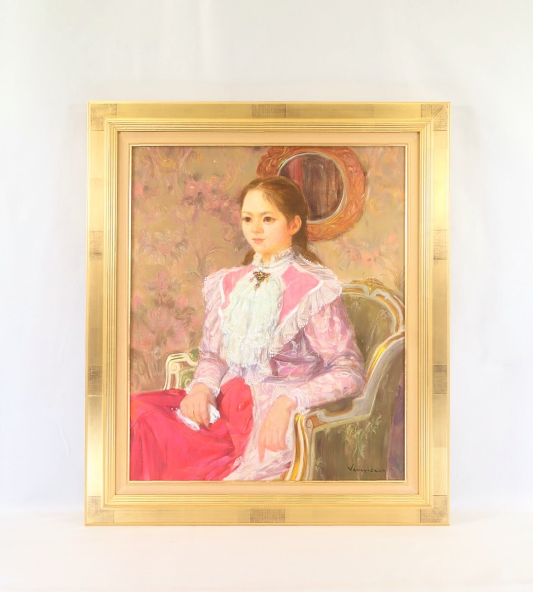 - 真作 柳沢淑郎 油彩「室内」画寸 F12 群馬県出身 白日会常任委員、日展評議員 優雅で穏やかな雰囲気 柔らかな筆致と明るい色遣い 11168