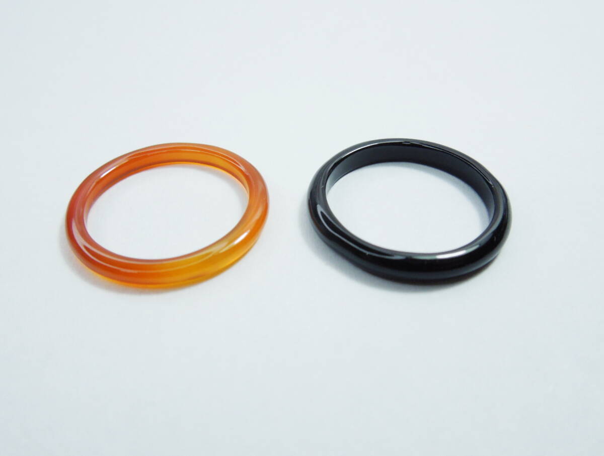 > S7 メノウリング 2点 約9号弱 黒オレンジ系 瑪瑙指輪 くりぬきリング オレンジ ブラック 黒 橙色 約8.75号