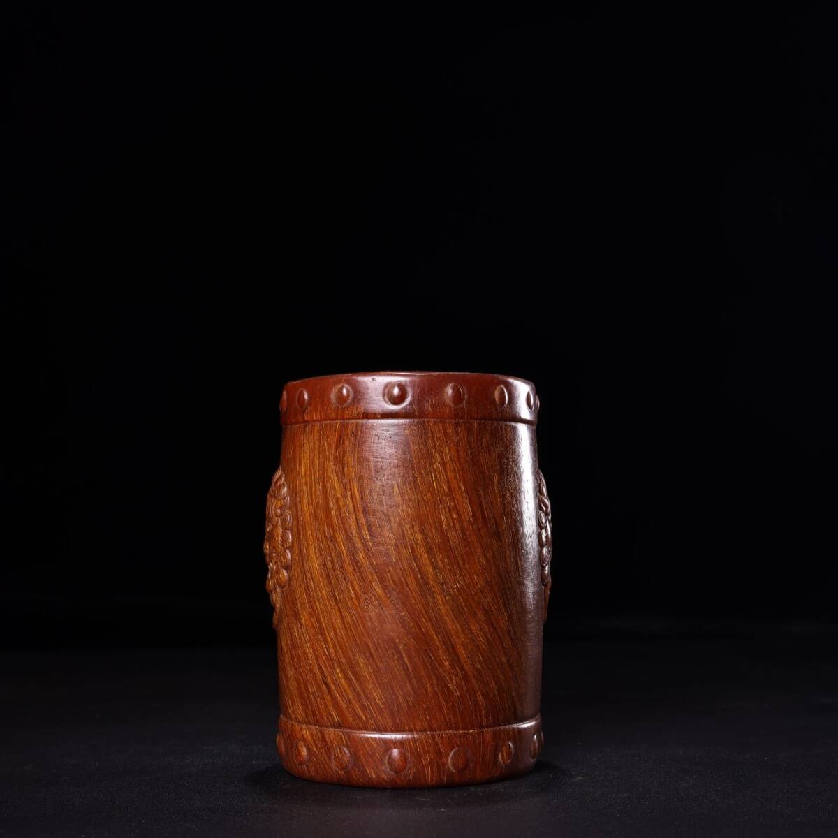 - 『館蔵珍品 角材細密彫 筆筒 置物 賞物』稀少珍蔵品 古賞物 貴重物品 収蔵品 中国古美術 時代物 古董品