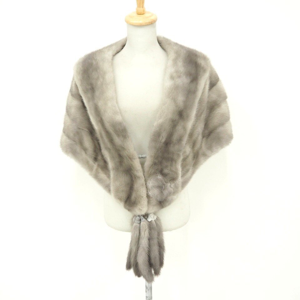 - 高級毛皮【 ¥1000~ / 銀 SAGA MINK / 美色 / フリンジ取外し可能 】 ◆サファイヤミンク ◆ショール ストール 幅43cm丈 ◆グレー ◆G252