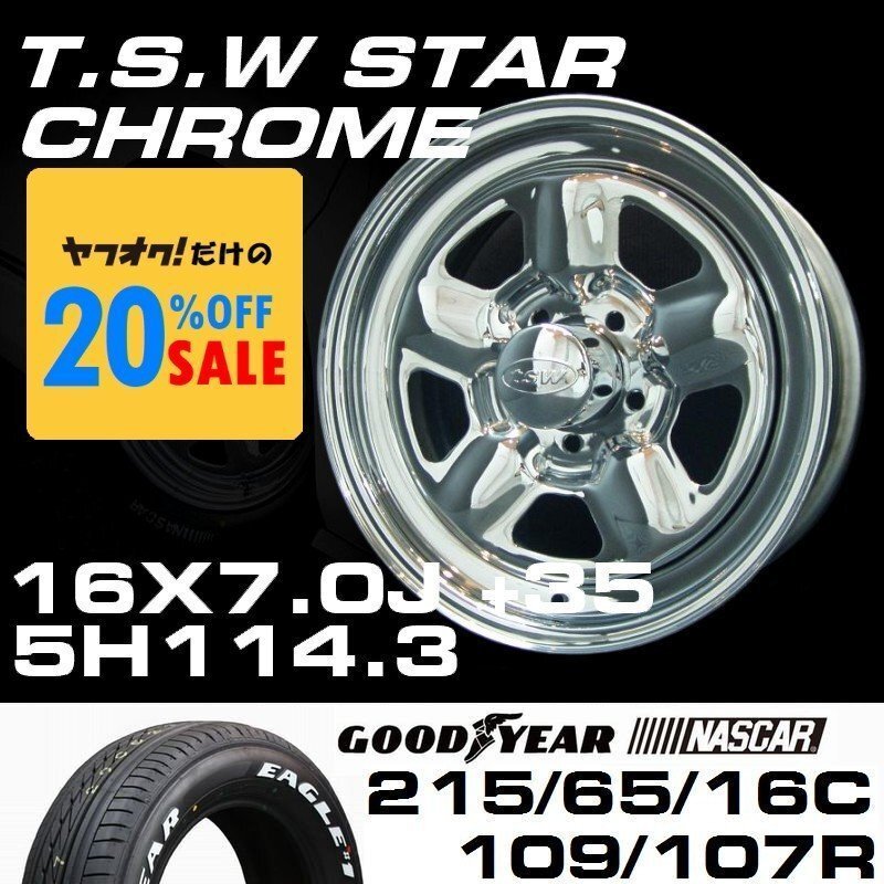 > 特価 TSW STAR クローム 16X7J+35 5穴114.3 GOODYEAR ナスカー 215/65R16C ホイールタイヤ4本セット(ハイエース/ハイラックス)