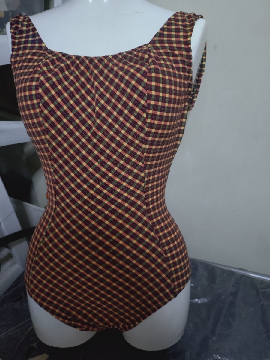 - M4331◆オカダ◆セレブなブラウン系チェック柄ワンピース水着◆9М