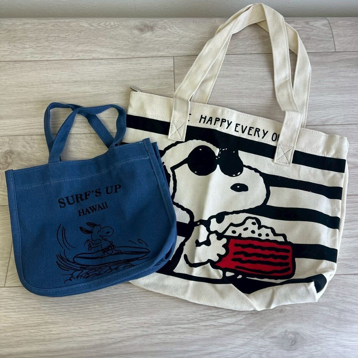 - 【新品未使用】SNOOPY スヌーピー トートバッグ ボーダー サングラス ランチバッグ 2個セット